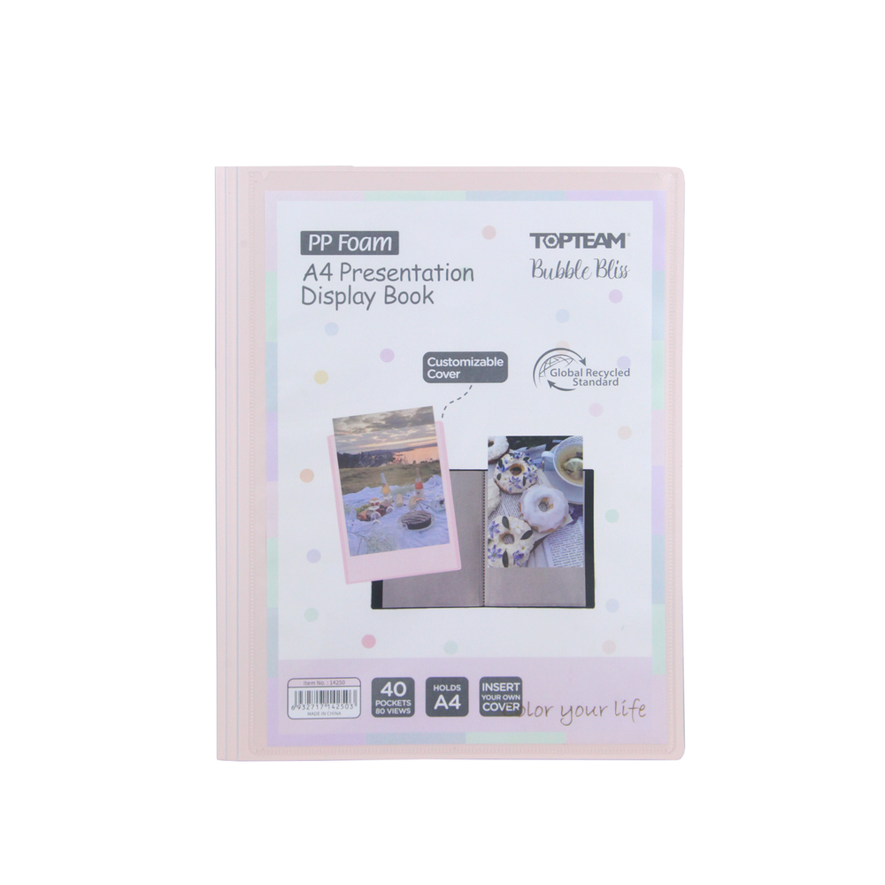 Detalles: | Carpeta de Presentación Linea Bubble Bliss | Exterior:1.6 x 245 x315mm | Bolsillo interior:0.04mm | Tamaño A4